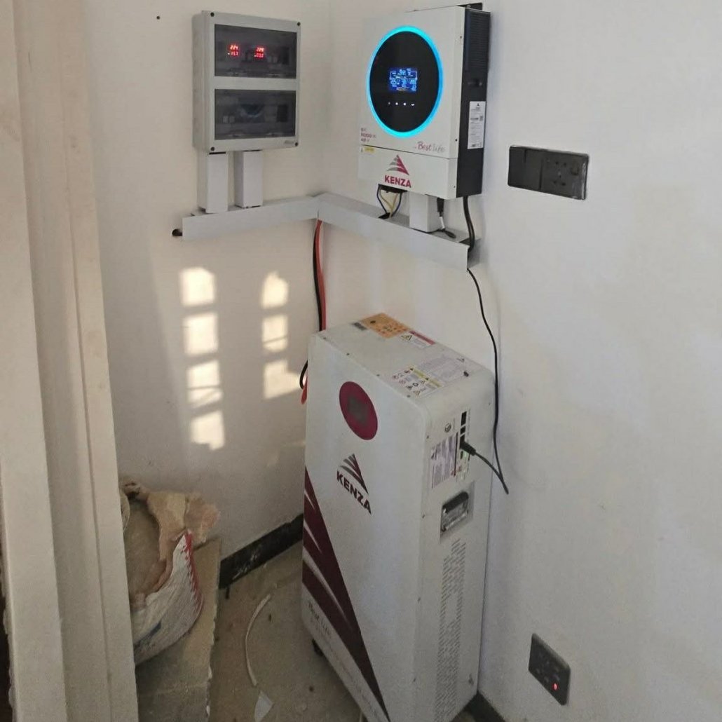 تم تنفيذ منظومة طاقة شمسية منزلية باستخدام أجهزة Kenza Solar لتوفير مصدر كهرباء مستقر وآمن للمنازل.